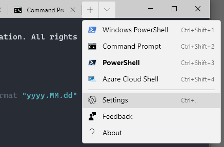A Windows Terminal teljesen testre szabható a settings.json fájlon keresztül, ami a fejlécből lenyitható menüből nyitható meg: