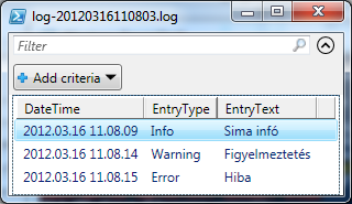 Evvel aztán a beépített keresési, szűrési és sorba rendezési lehetőségekkel könnyen tudjuk kezelni a naplófájlunkat.