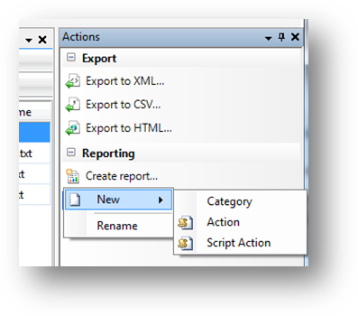 Ez még idáig helyettesíthető lenne nagyjából az Out-GridView kimenettel is, hiszen itt is lehetne oszlopfejléceket eltüntetni, sorba rendezni, szűrni, stb. Az igazi egyedi lehetőség, amitől ez rendszergazda-eszköz lesz, hogy a jobboldali „Actions” részben újabb szkripteket lehet definiálni, melyek az eredményrácsban kijelölt elemeken valamit végeznek: