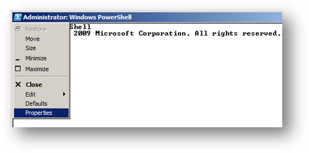 egérgombbal kattintunk az ablak bal felső sarkában levő PowerShell ikonra