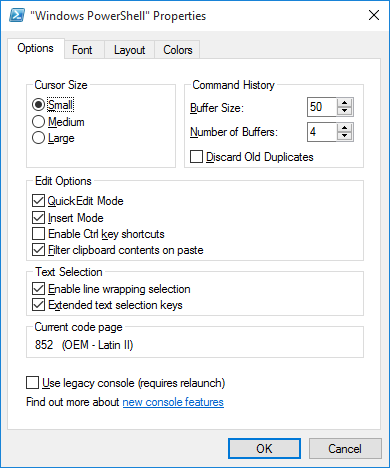 A Windows 10-ben jelentősen fejlesztették a konzol kinézetét, lehetőségeit. Itt a tulajdonságok között is sok a változás: